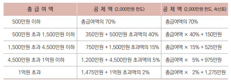 (๊ทผ๋ก์๋๊ธ์ก 4์ฒ๋ง ์ ์ดํ 500๋ง ์, 1์ต ์ ์ดํ 300๋ง์, 1์ต์ ์ด๊ณผ 200๋ง ์ ํ๋)