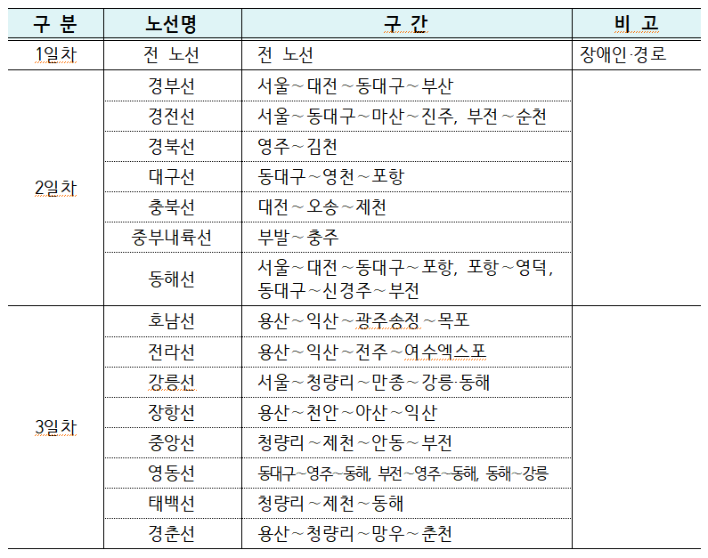โ–ถ ๋ช…์ ˆ ์Šน์ฐจ๊ถŒ์€ KTX ๋งˆ์ผ๋ฆฌ์ง€, ์ผ๋ฐ˜์—ด์ฐจ ํ• ์ธ์ฟ ํฐ ์ ๋ฆฝ ๋Œ€์ƒ์—์„œ ์ œ์™ธํ•ฉ๋‹ˆ๋‹ค.