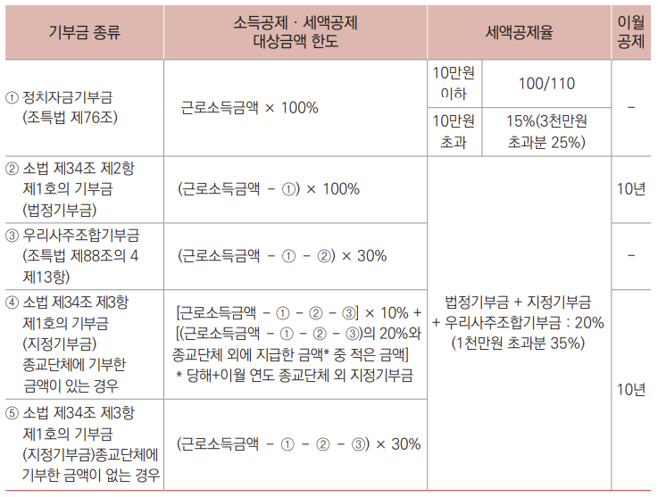 * ์ง€์ •๊ธฐ๋ถ€๊ธˆ(์ข…๊ต๋‹จ์ฒด ๋ฐ ๋น„์ข…๊ต๋‹จ์ฒด ํฌํ•จ)์€ ๊ทผ๋กœ์†Œ๋“๊ธˆ์•ก์˜ 30%๋ฅผ ์ดˆ๊ณผํ•  ์ˆ˜ ์—†์Œ
